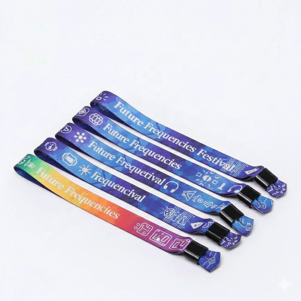 Best Selling Environmentally Friendly RPET Custom Fabric Wristband with Slide Lock for VIP Concert Festival