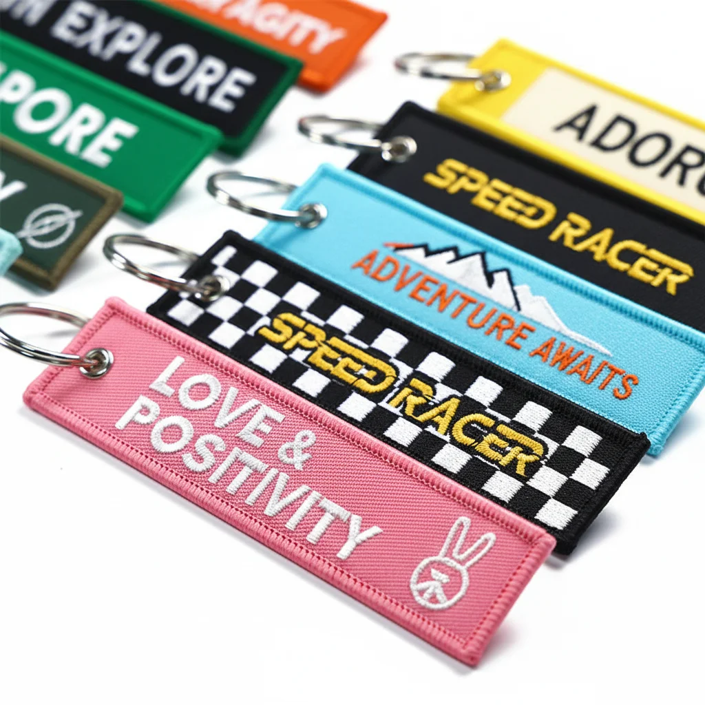Promotional Gifts Custom Cheap Flight Textile Key Jet Tag Chain Fabric Embroidery Motorcycle Car Keychains Woven Keychain |
